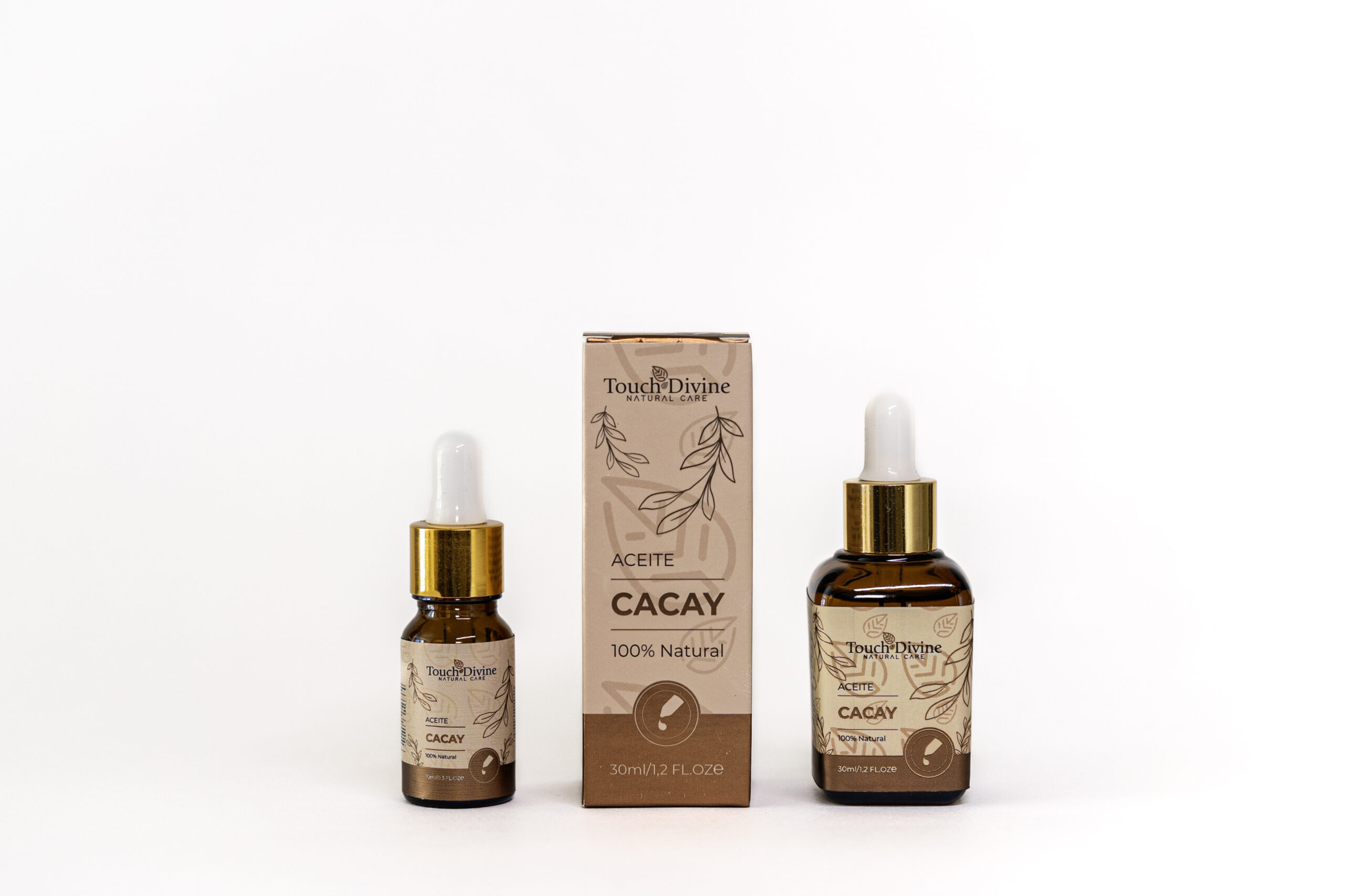 El aceite extraído de la nuez de Cacay, es el mejor antienvejecimiento natural por excelencia, atenúa las manchas, reduce la apariencia de las líneas de expresión, estimula la regeneración celular, mejora la elasticidad, hidratación y firmeza de la piel, gracias a  las extraordinarias propiedades del Retinol (el más alto contenido en la categoría de los aceites de belleza como Argán y Rosa Mosqueta), Vitamina A, E, F y  Omegas 6 y 9.
